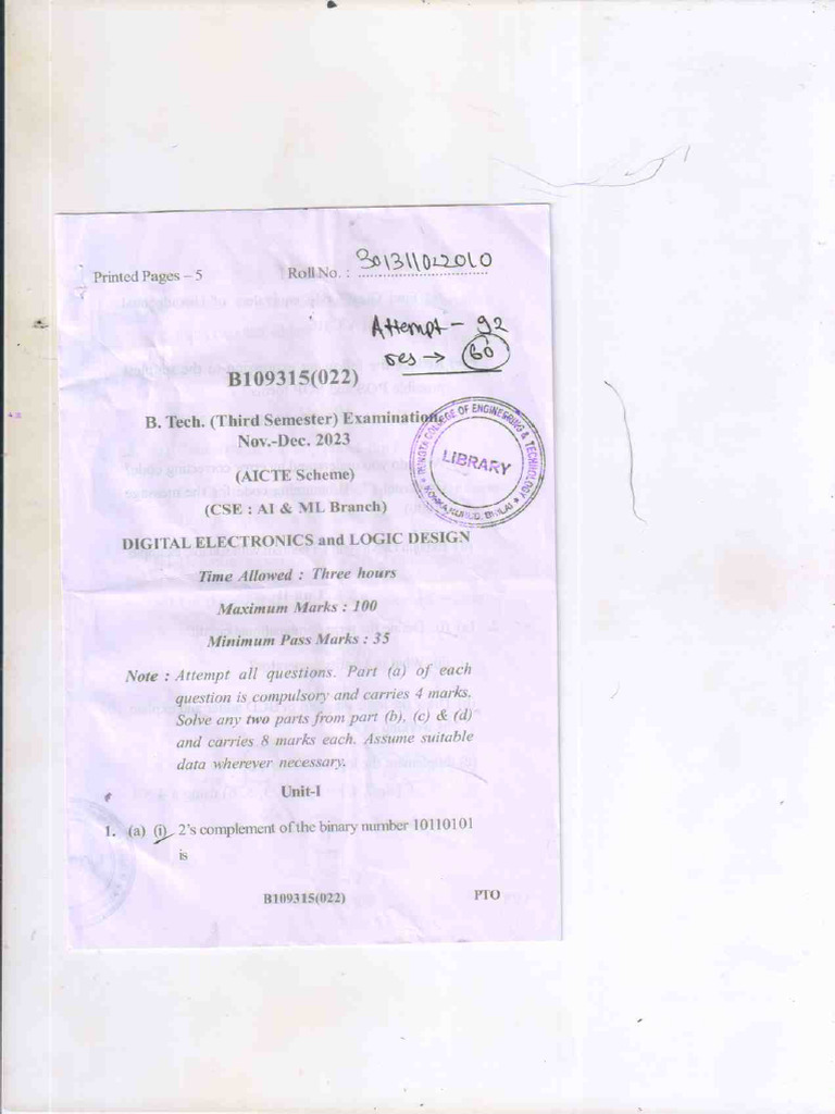 2023 - November - Digital Electronics and Logic Design Deld Pattern ...