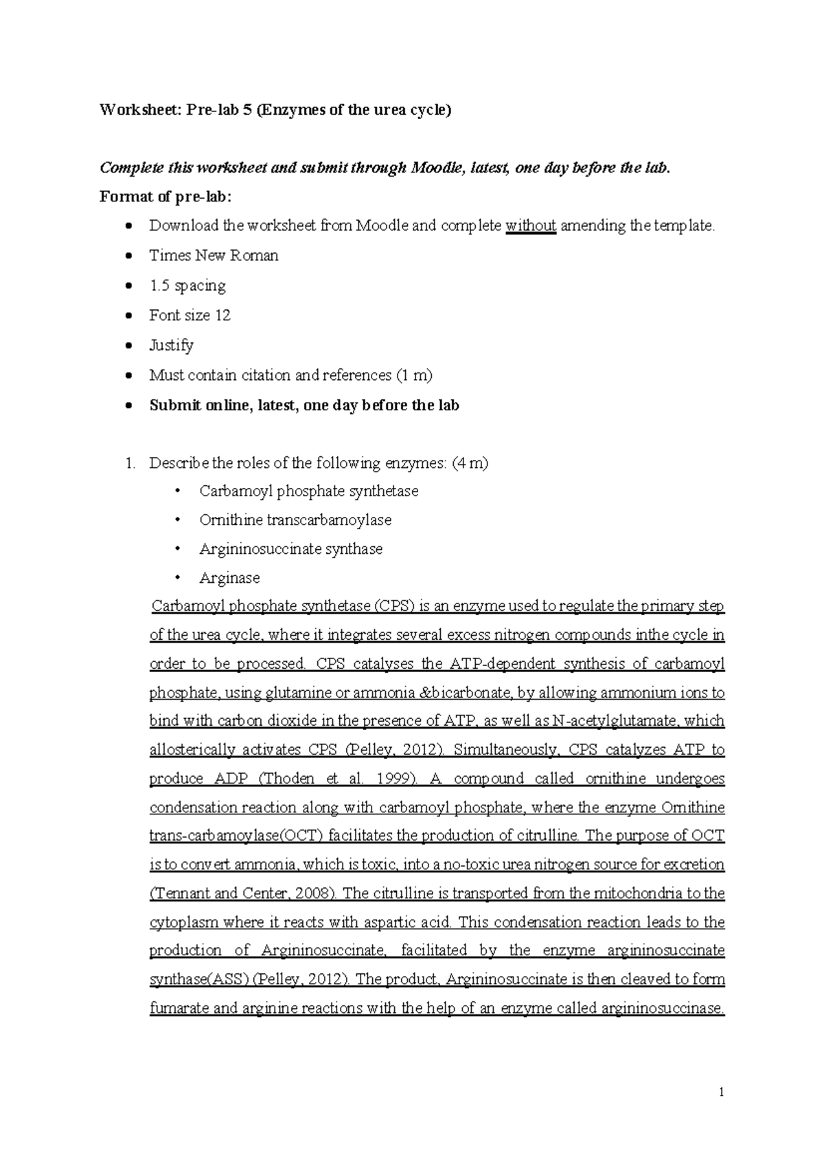 Prelab 5 - enzymes of the urea cycle - Nanthisha Harwani , 29898544 ...