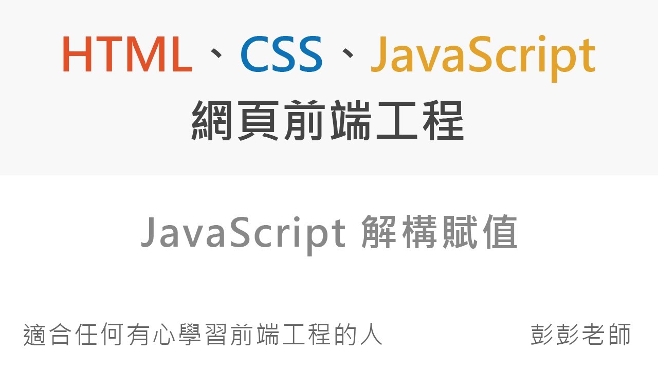 JavaScript 解構賦值 Destructuring Assignment - Front End 網頁前端工程教學 - YouTube