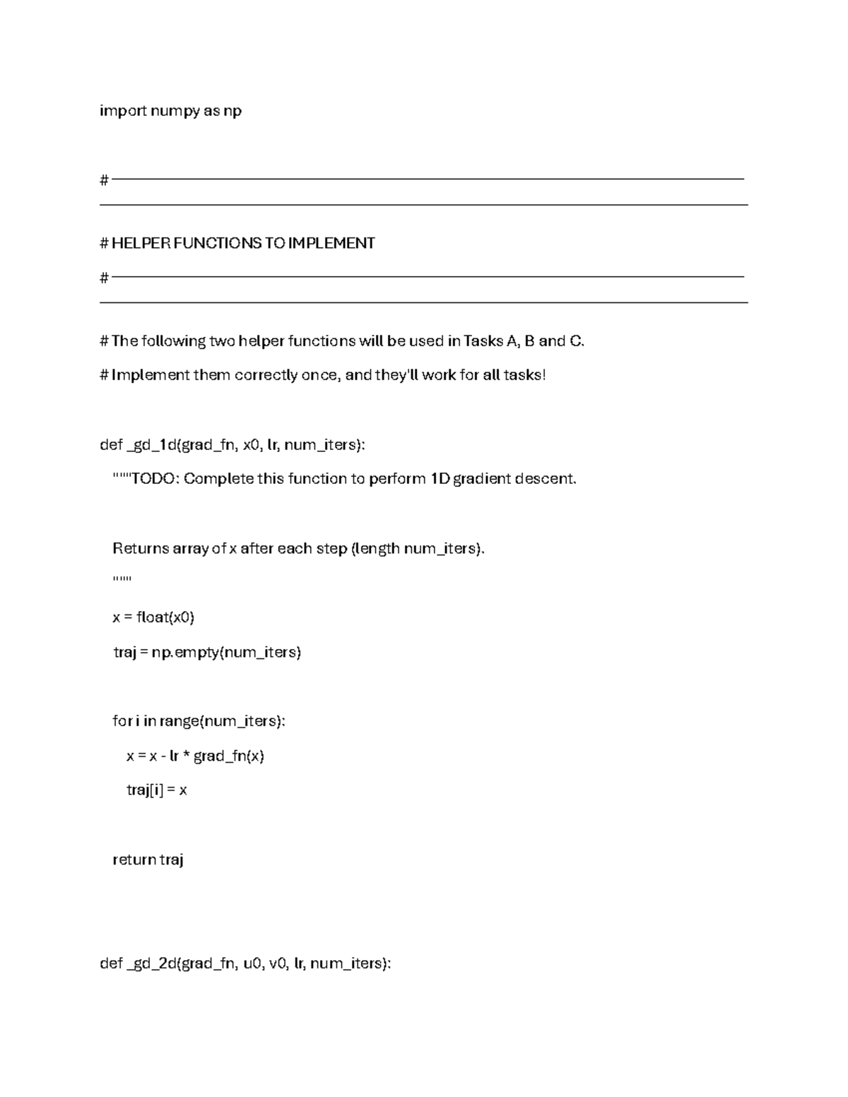 Assignment 3: Gradient Descent Helper Functions Implementation - Studocu