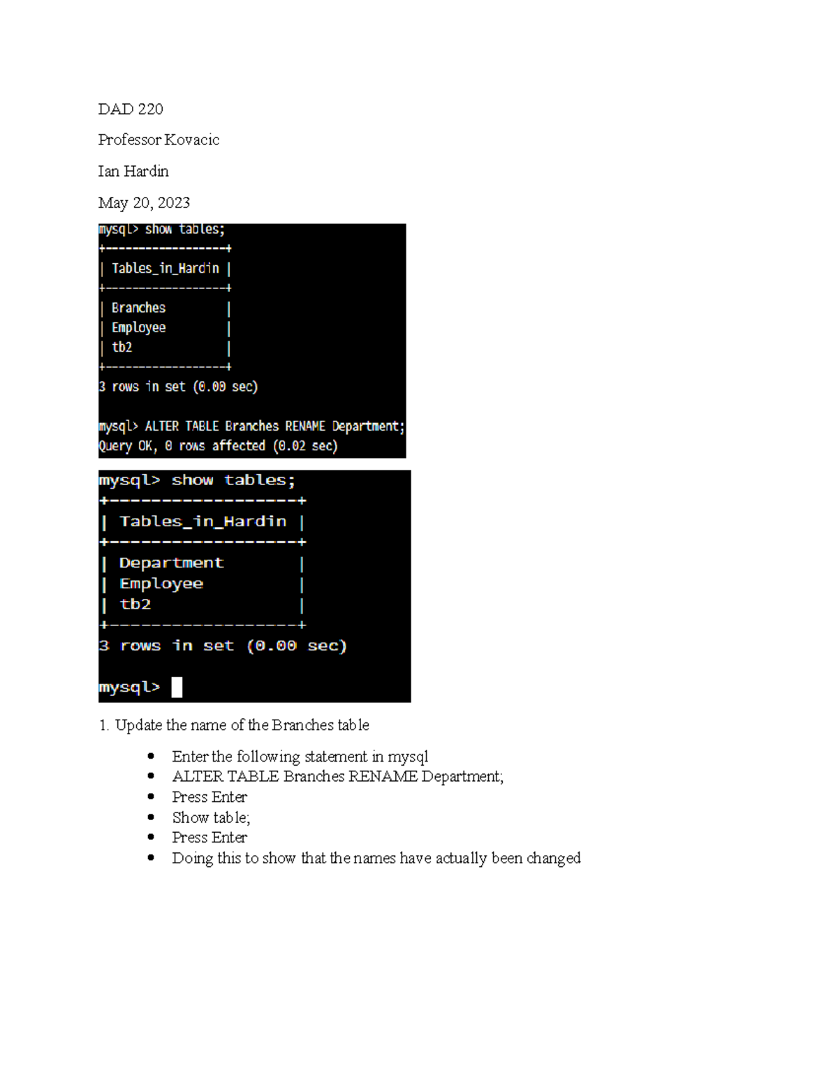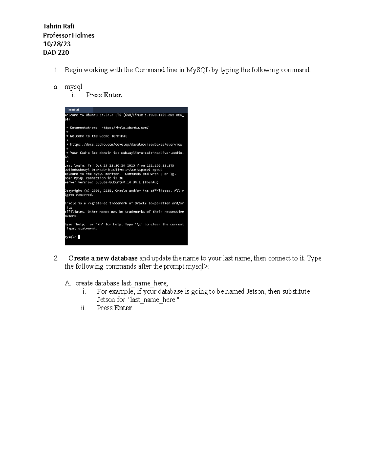 DAD 220 - MySQL Command Line Lab Instructions and Steps - Studocu