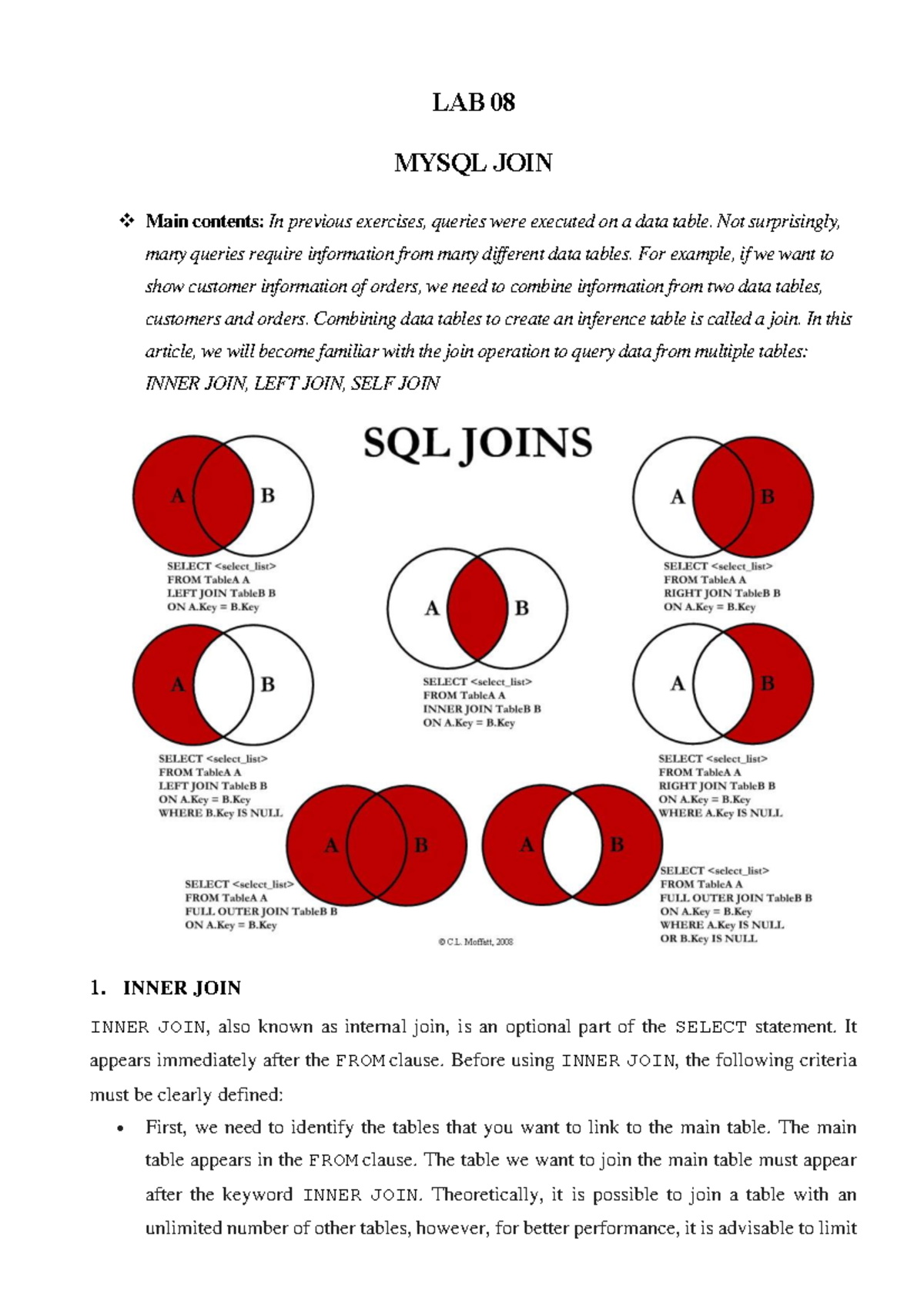 Lab 08: MySQL join operations and examples - Studocu