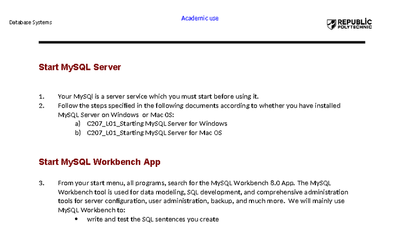 C207_L01_Guide to Using MySQL Workbench for Database Setup - Studocu