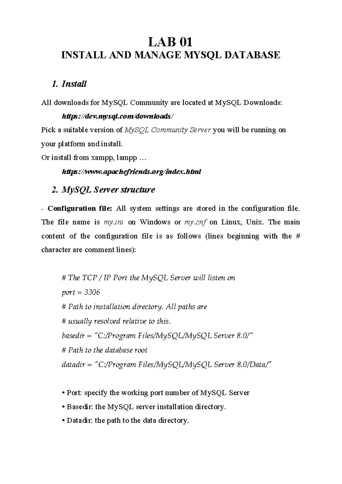 LAB01 Mysql - hi. - LAB 01 INSTALL AND MANAGE MYSQL DATABASE 1. Install ...