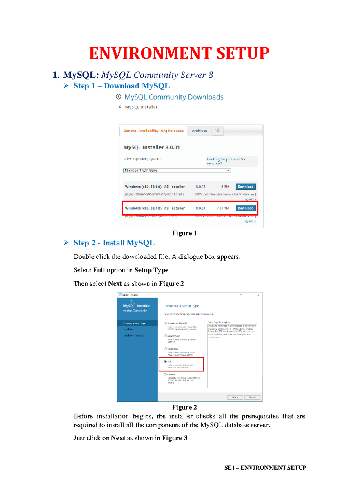 Environment Setup - ENVIRONMENT SETUP 1. MySQL: MySQL Community Server ...