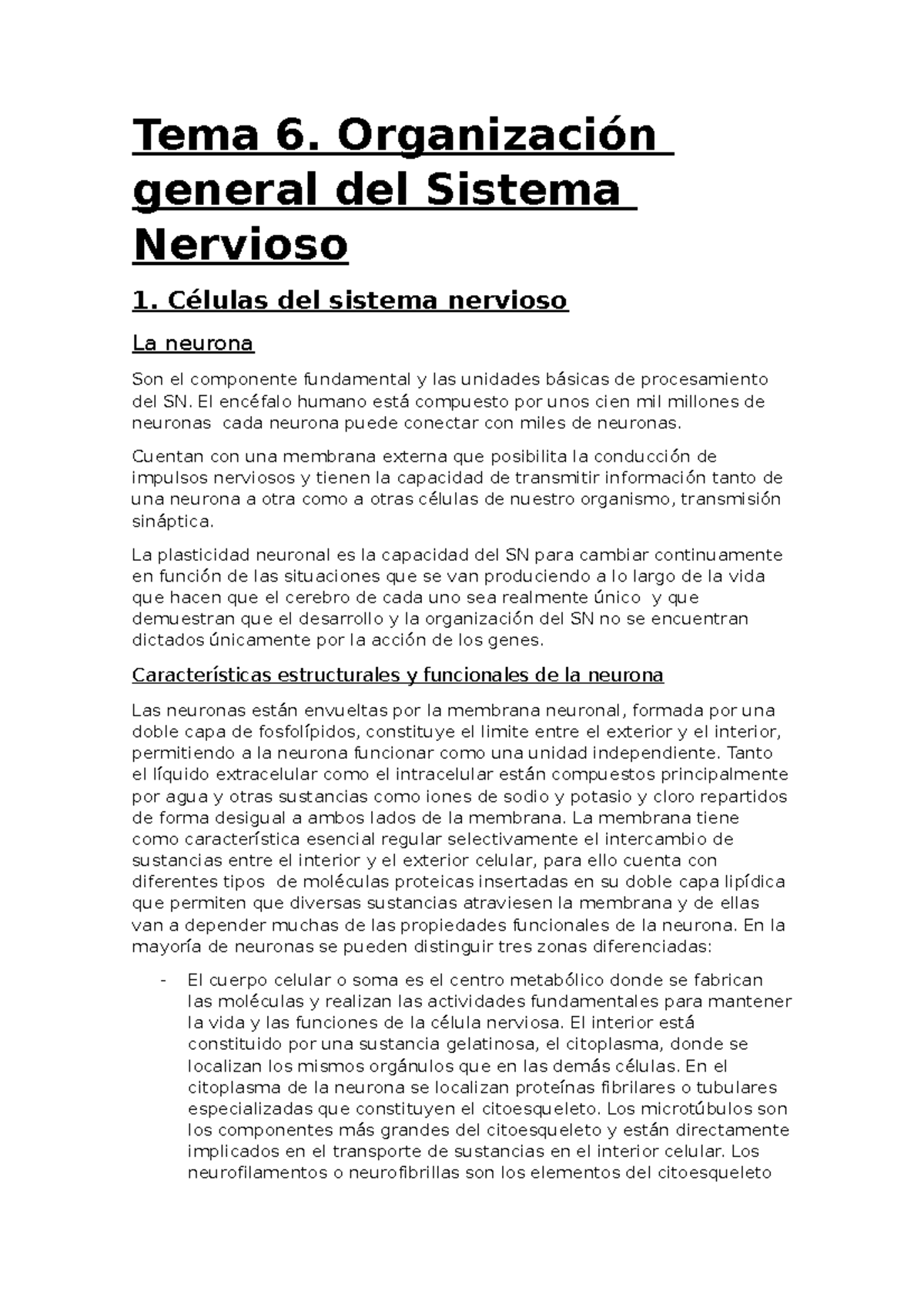 6. Organización general del sistema nervioso - Tema 6. Organización ...