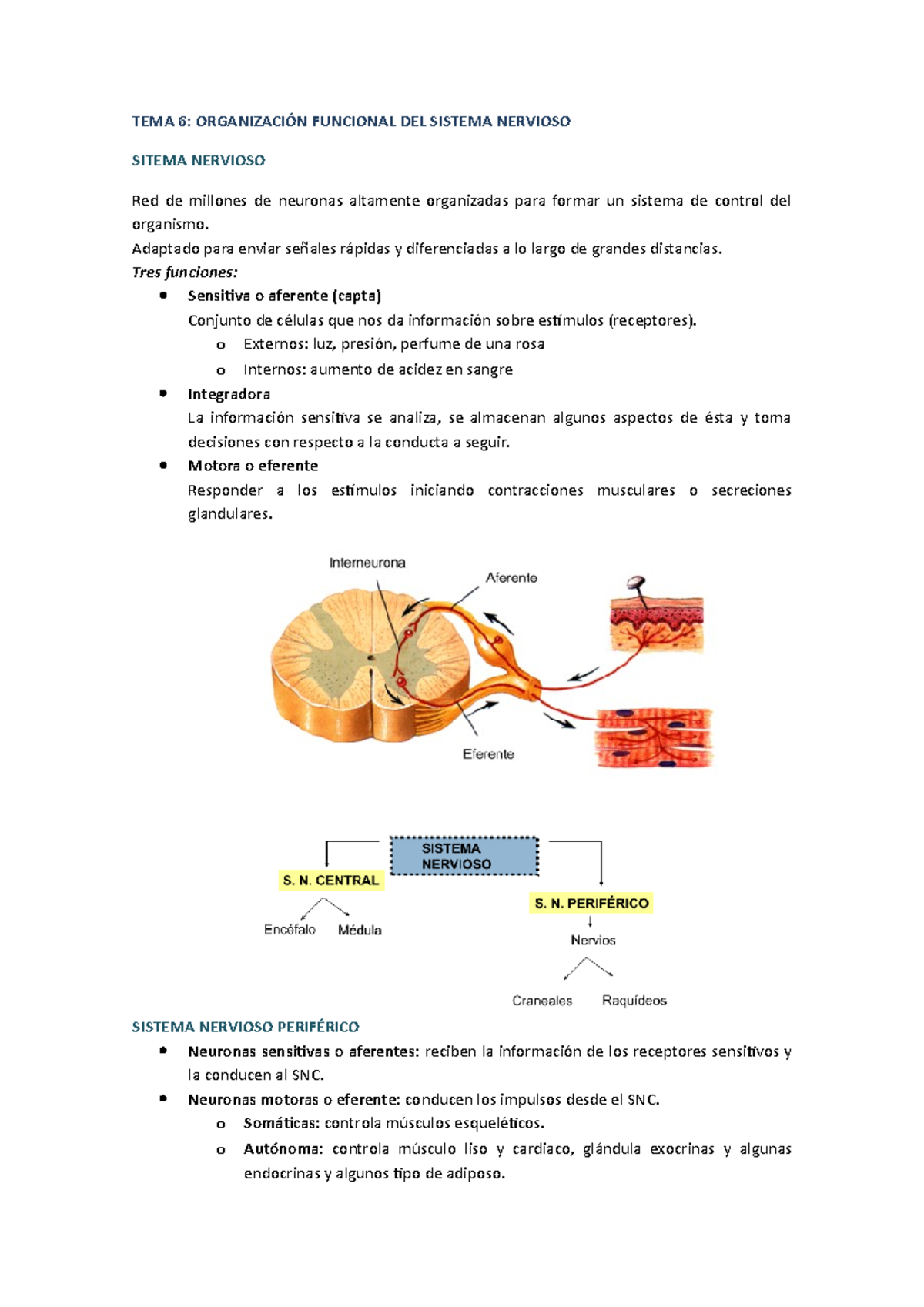 TEMA 6 organización funcional del SN - TEMA 6: ORGANIZACIÓN FUNCIONAL ...