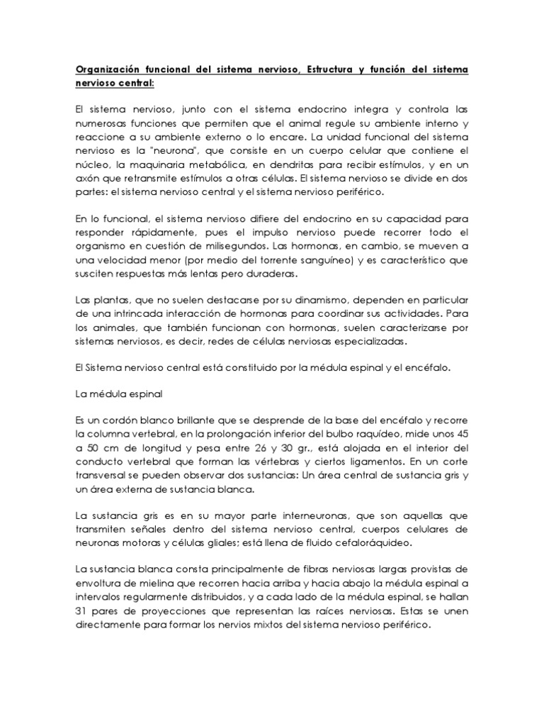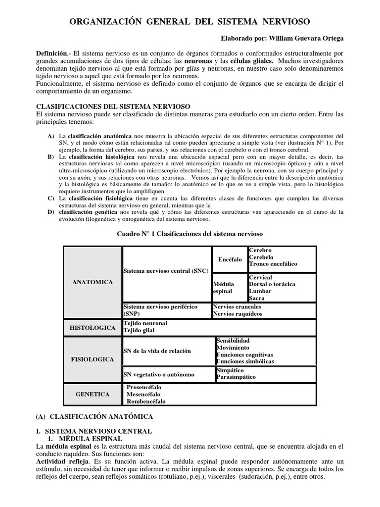 Organización del Sistema Nervioso | PDF | Sistema nervioso | Sistema ...