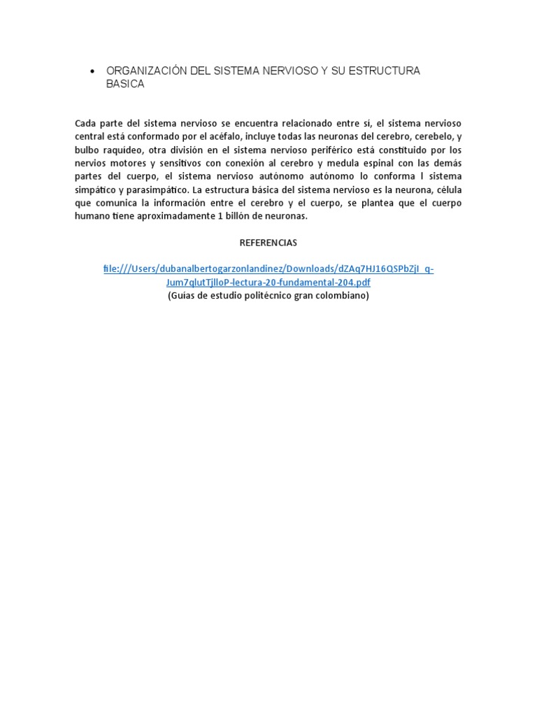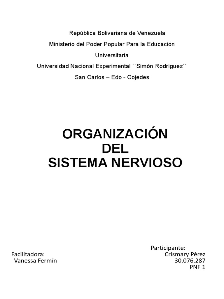 ORGANIZACIÓN Y ESTRUCTURA DEL SISTEMA NERVIOSO | Florencia | uDocz