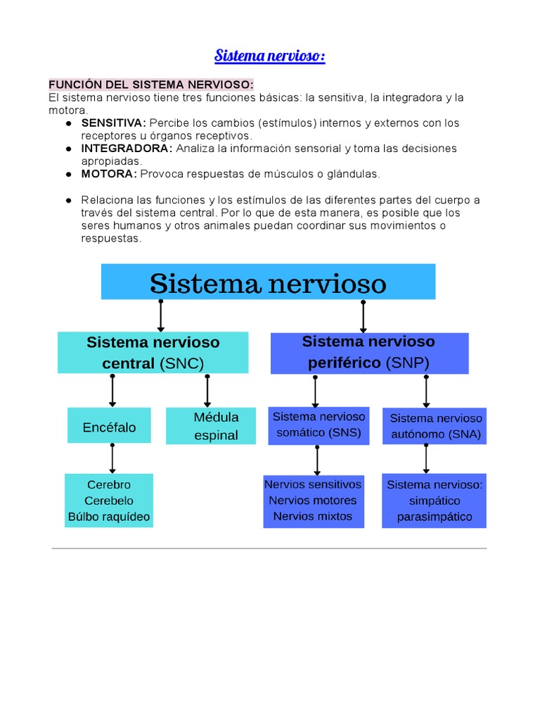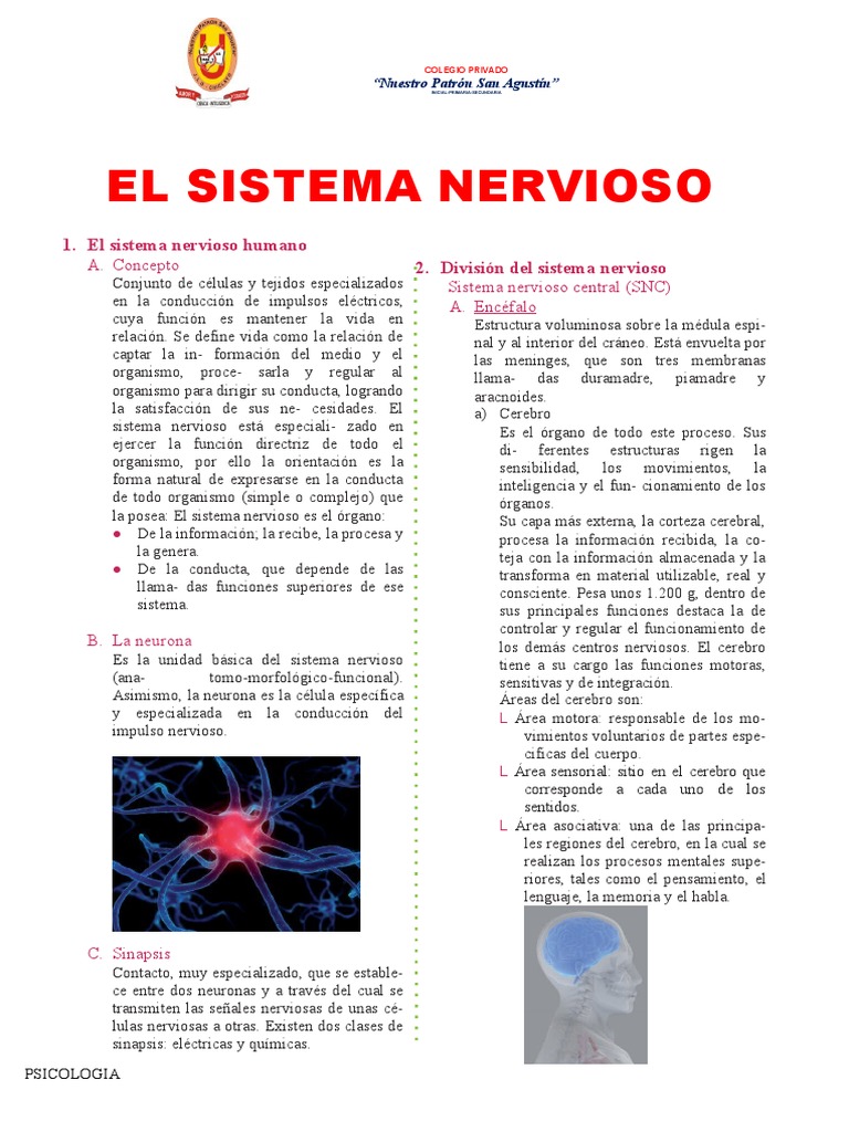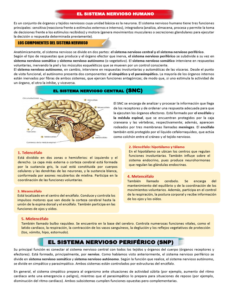 Resumen del Sistema Nervioso Infantil | PDF | Cerebro | Sistema ...