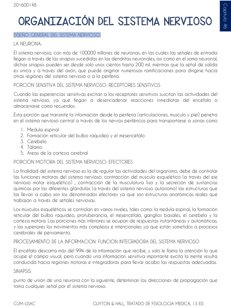 Cap. 46 Organizacion Del Sistema Nervioso | PDF | Sinapsis | Sistema ...