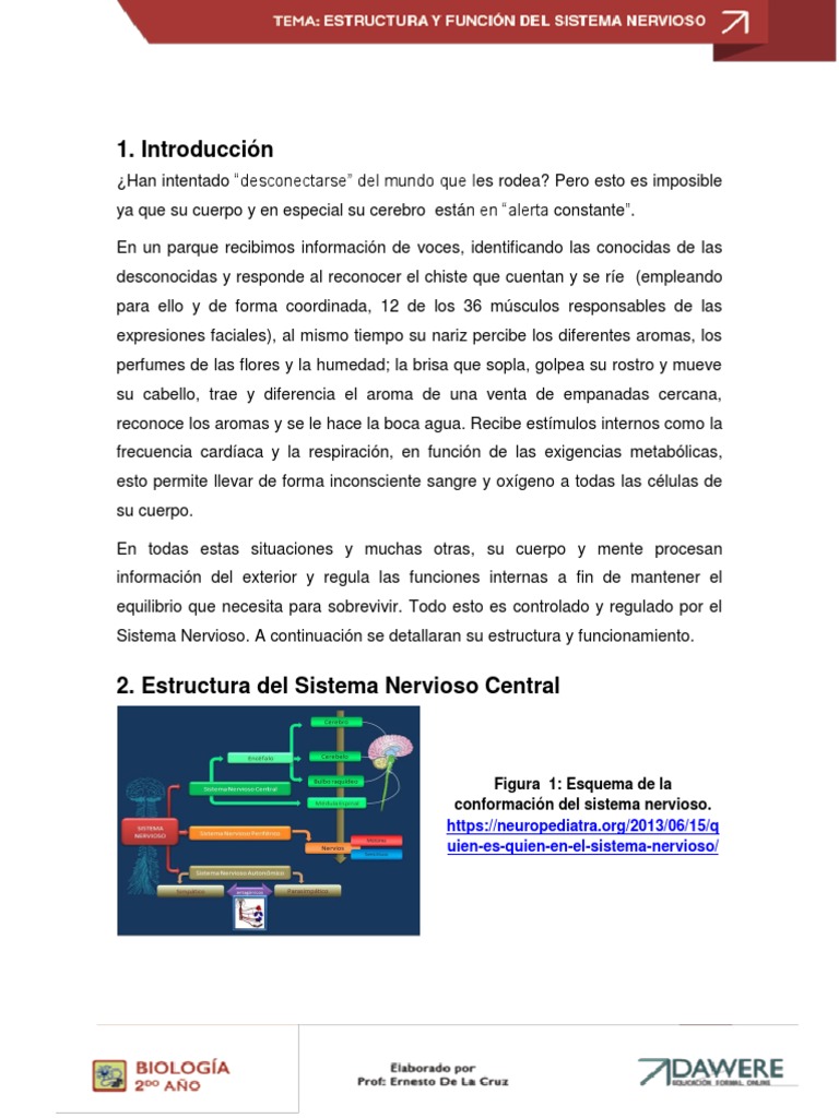 Sistema Nervioso (Estructura, Órganos y Función) Clase 2 | PDF ...