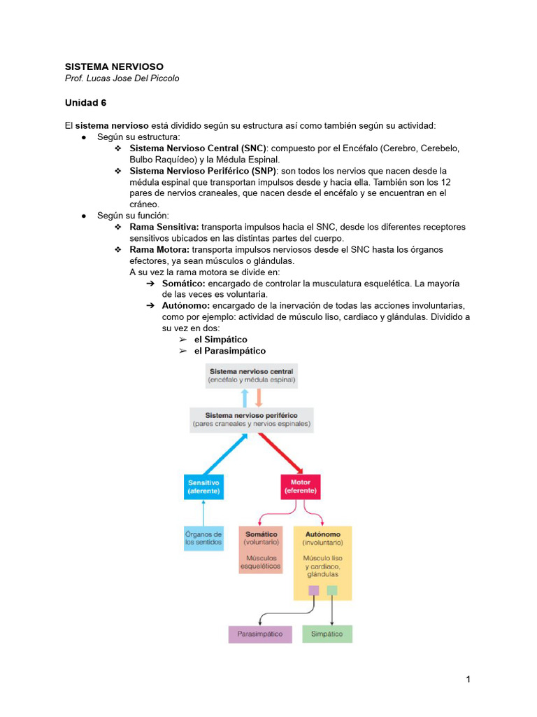 Unidad 6 Organización estructural y funcional del sistema nervioso ...
