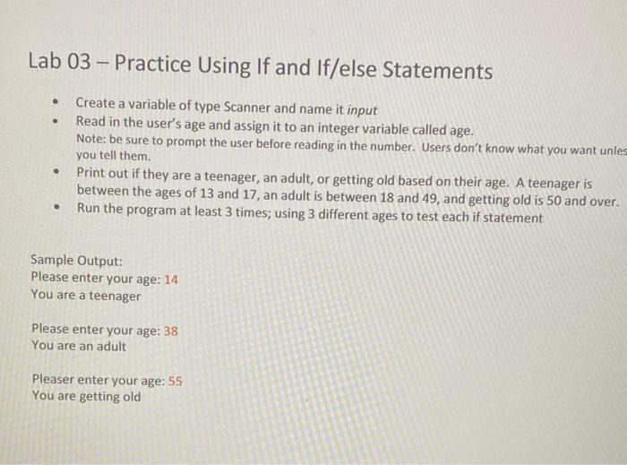 Solved Lab 03 - Practice Using If and If/else Statements - | Chegg.com