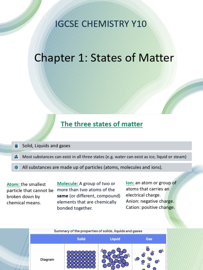 IGCSE Y10 Chapter1 States of Matter | PDF | Gases | Liquids