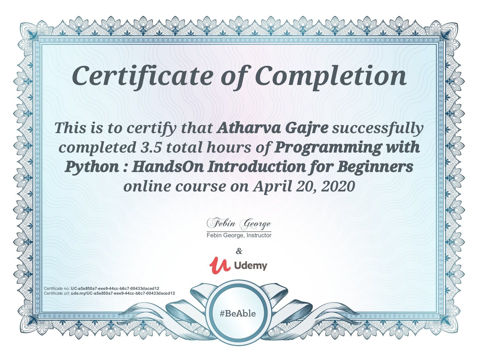 Completion of Python Programming course on Udemy | Keerti Vijapur ...