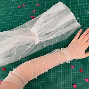 1pc Ivory White Mesh Puff Sleeve Elastic Cuff Four-layered Bridal ...