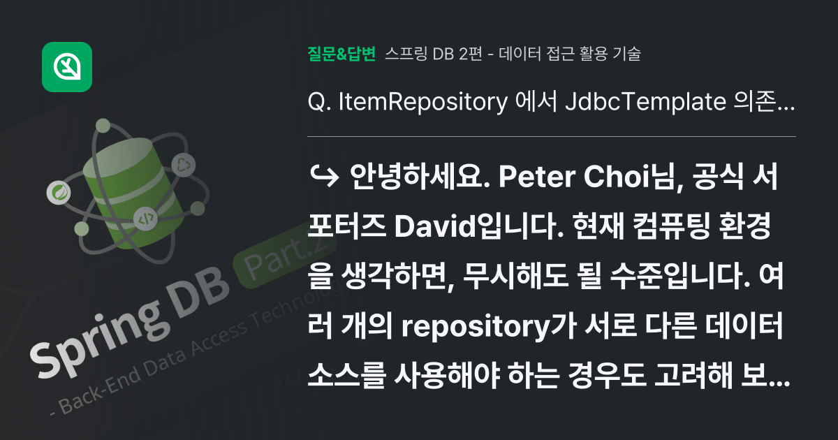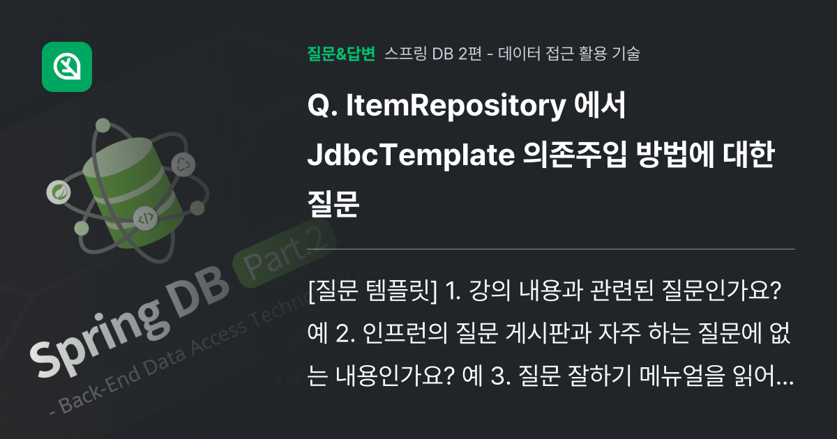 ItemRepository 에서 JdbcTemplate 의존주입 ... - 인프런 | 커뮤니티 질문&답변