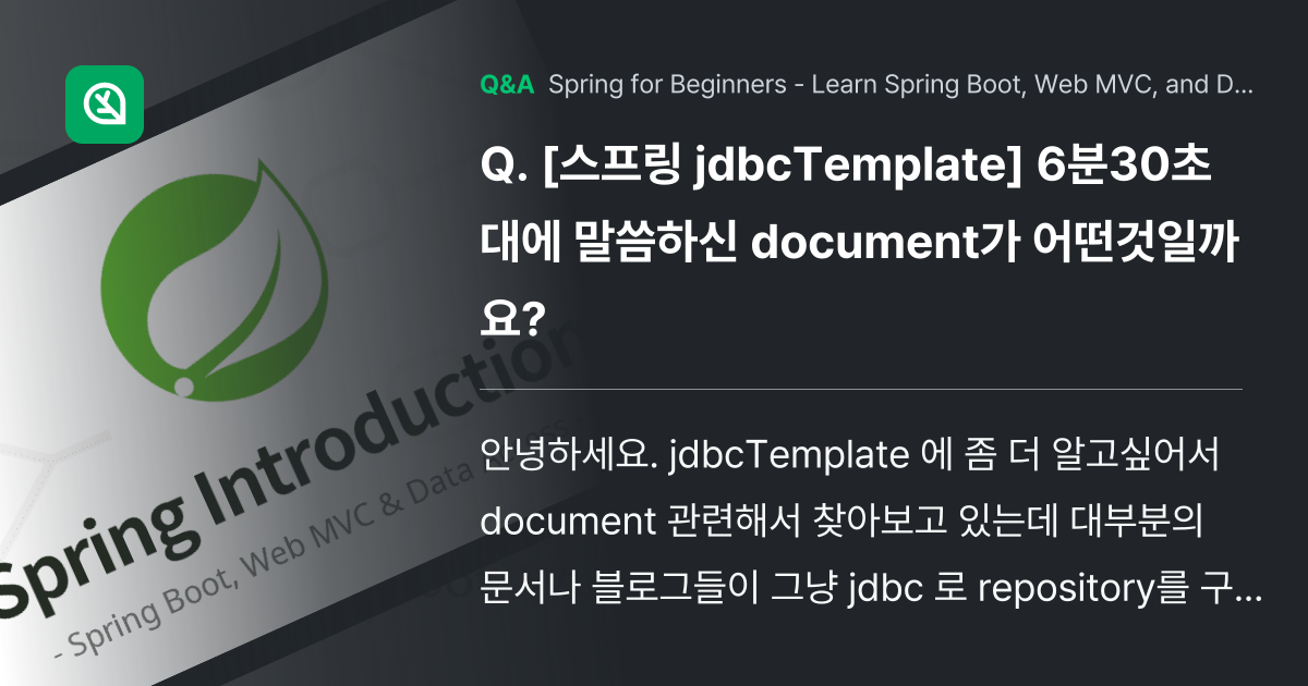 [스프링 jdbcTemplate] 6분30초대에 말... - Inflearn | Community Q&A