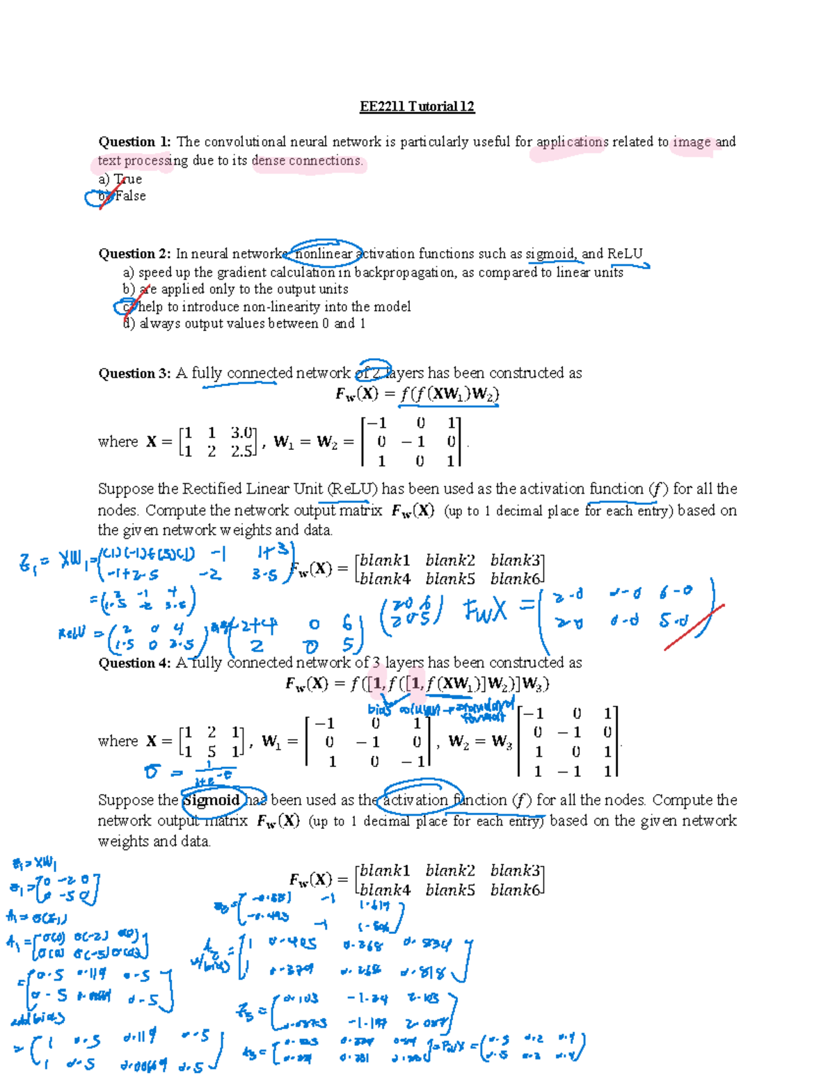 EE2211 Tutorial 12: Neural Networks Questions and Solutions - Studocu