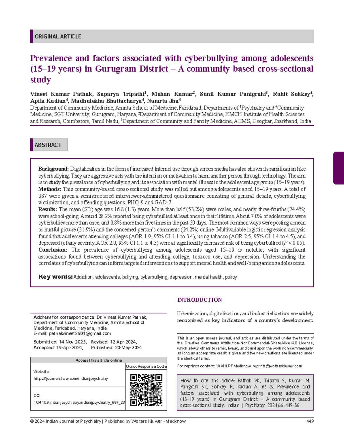 Cyberbullying Among Adolescents (15-19 years) in Gurugram District: A ...