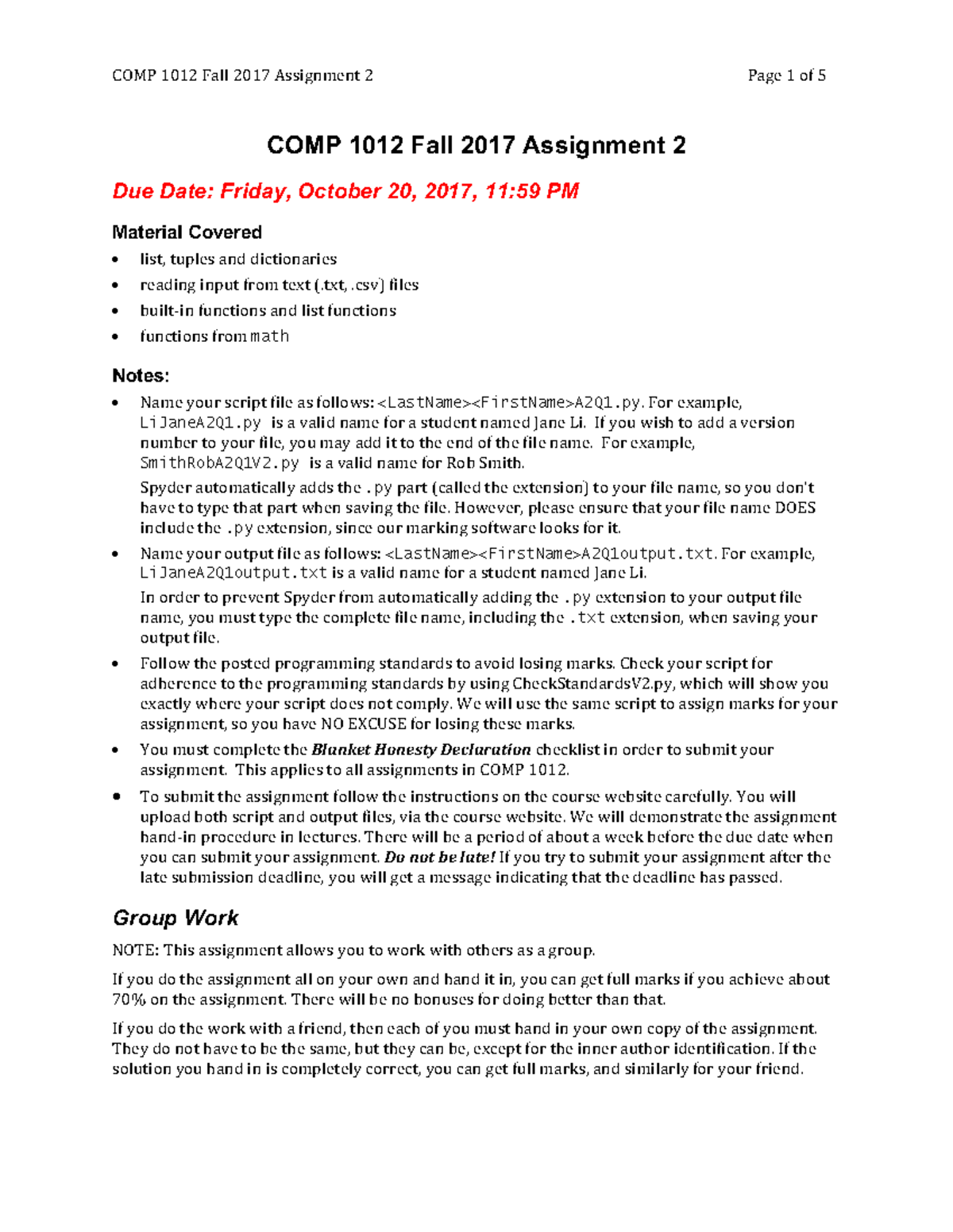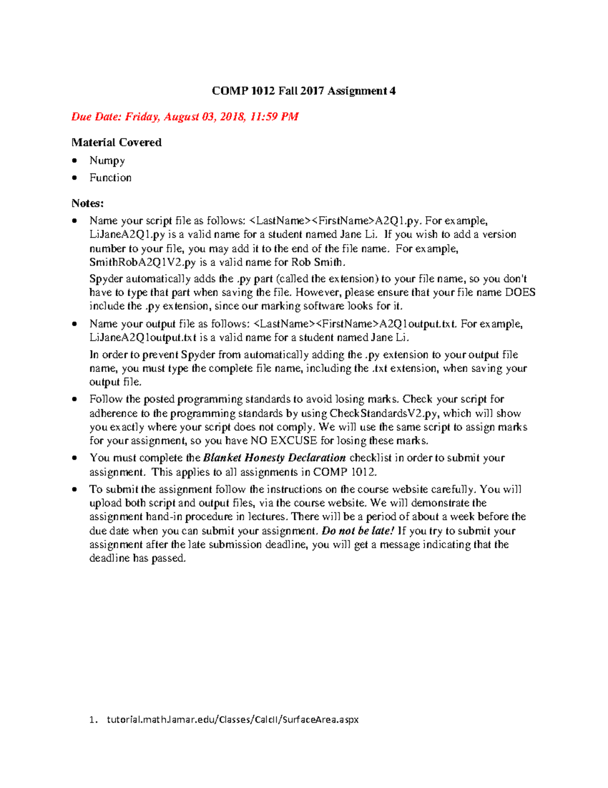 COMP 1012 - Assignment 1 - Computer Programming for Scientists ...