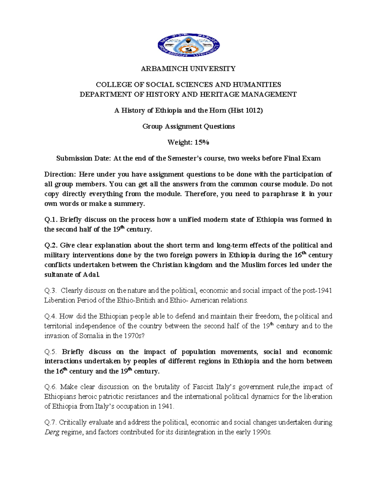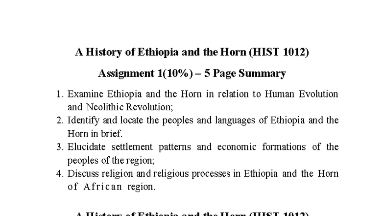 HIST 1012 Assignments 1 & 2 Summary: Ethiopia and the Horn - Studocu