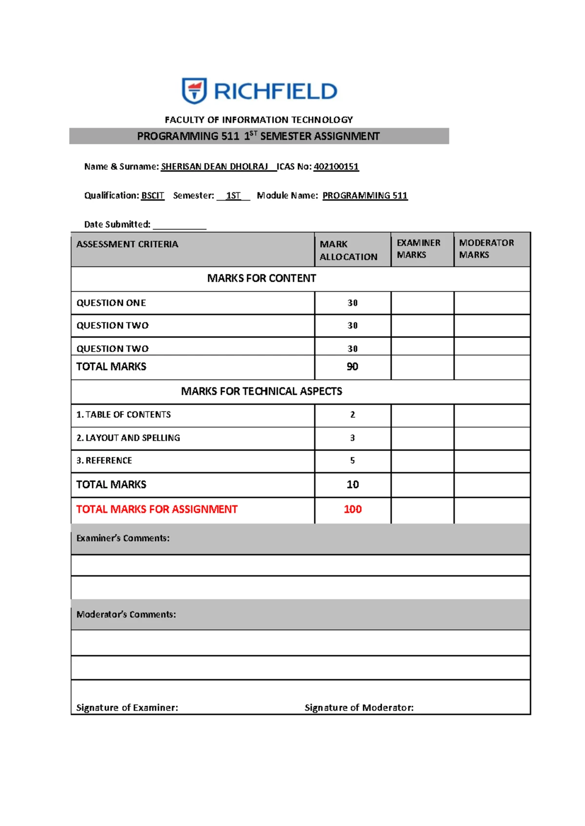 Programming 621 Assignment - FACULTY OF INFORMATION TECHNOLOGY ...