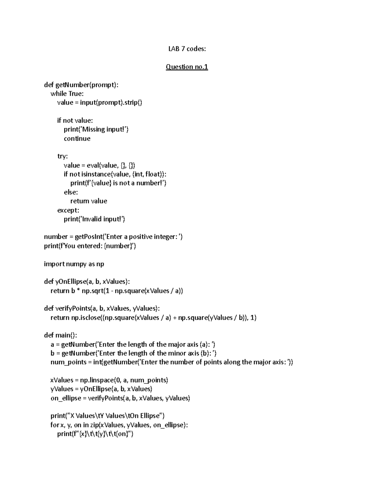 Lab7 - lab 7 - import numpy as np def getNumber(prompt): while True ...