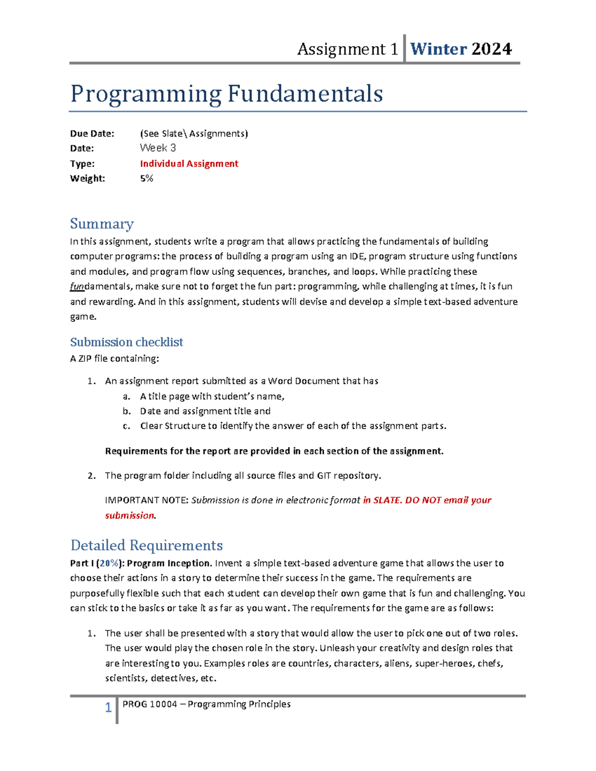 Assignment 1 - Programming Fundamentals - Programming Fundamentals Due ...