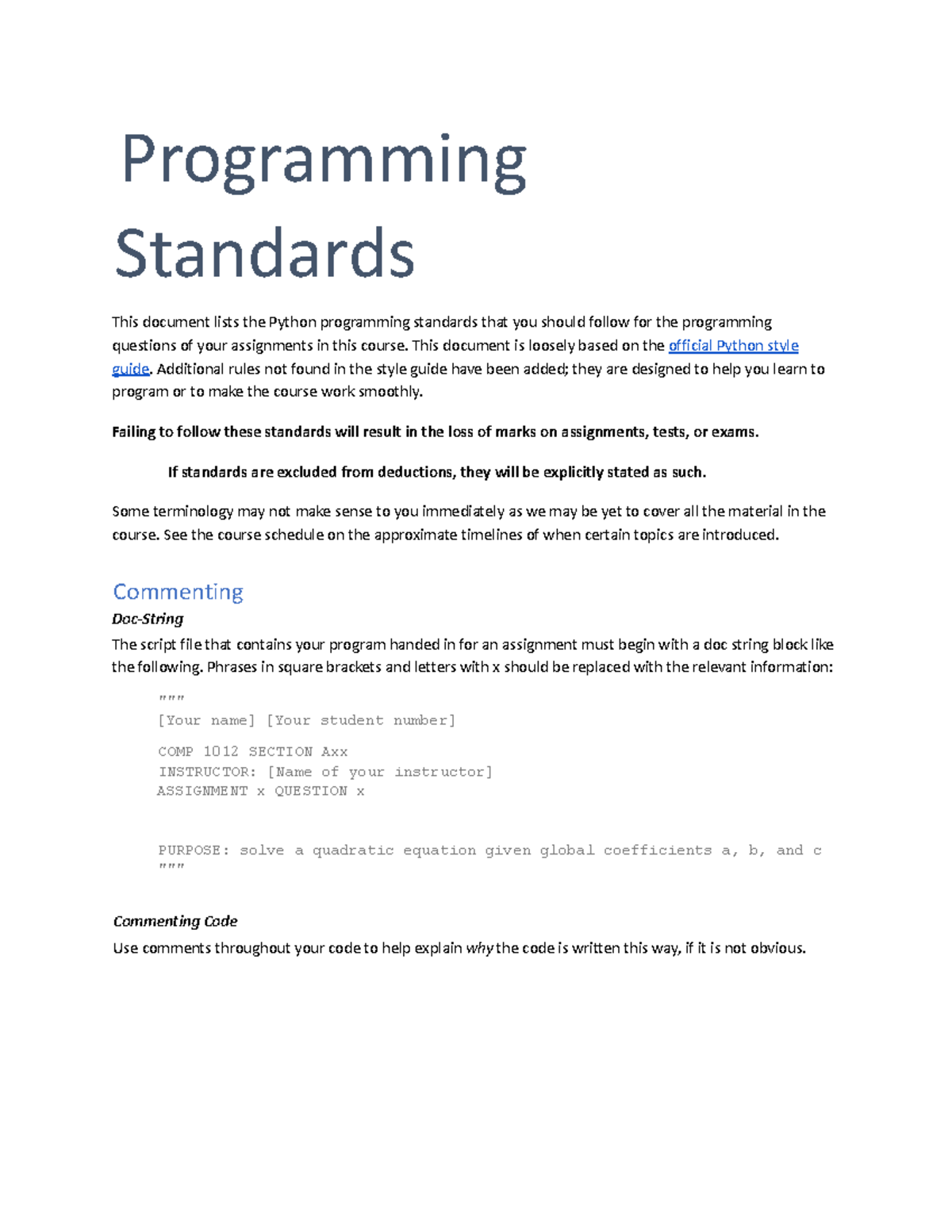 COMP 1012 Programming Standards for Python Assignments 2025 - Studocu