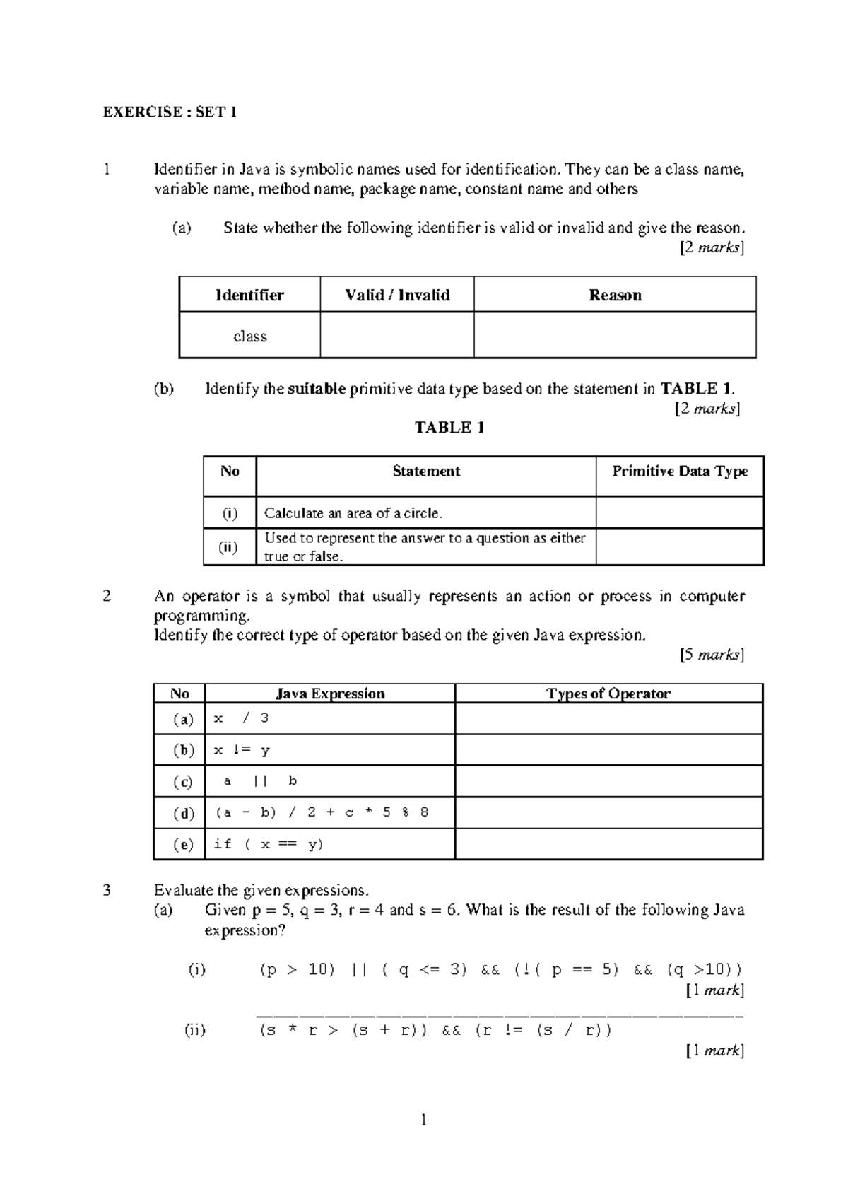 Java Programming: Exercise Set 1 - Identifiers, Data Types & Operators ...