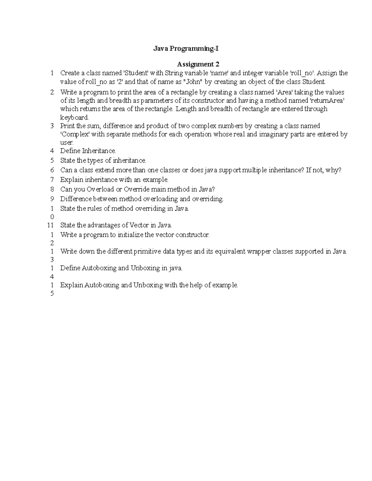Assignment 2 about operators - Java Programming-I Assignment 2 1 Create ...