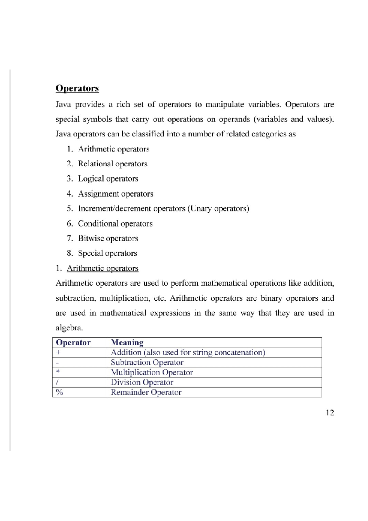Operators in Java Notes - Operators in Java There are many operators in ...