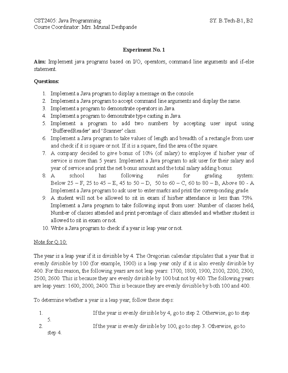 Java Lab No. 1-5: Detailed Practical Approach to Java Programming - Studocu