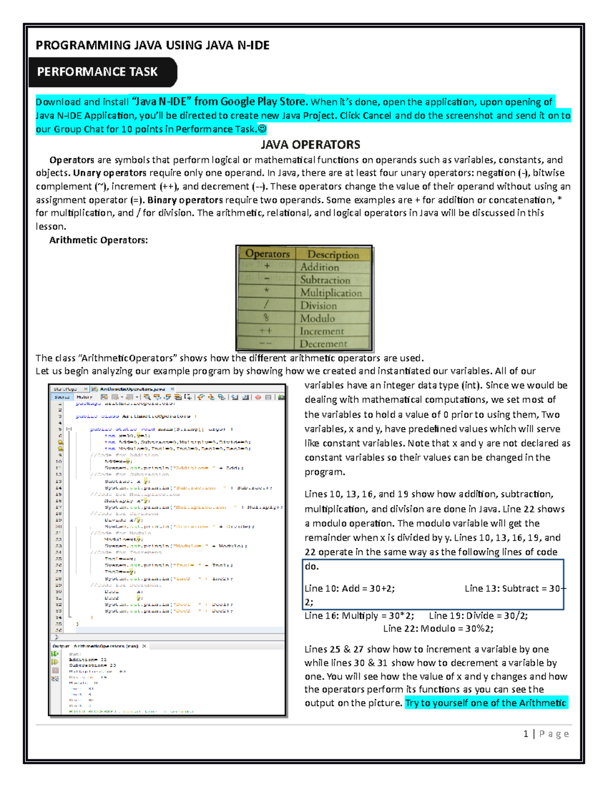 MODULE 1 Expression and Operators in Java - Computer Programming 1 ...