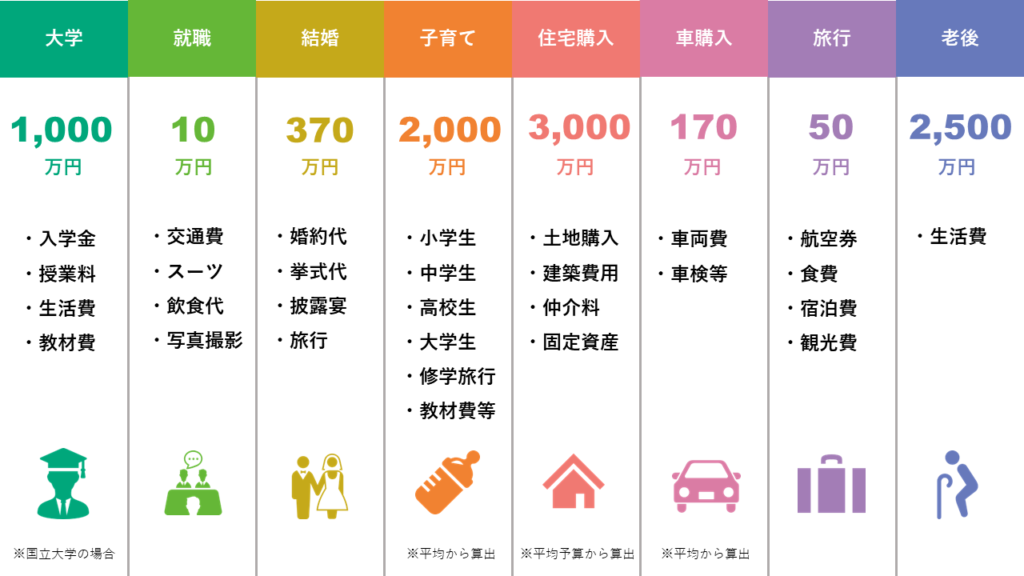 年代別ライフイベントを一覧で解説!費用を知って準備をしよう | ここしん