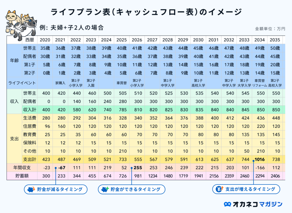 ライフプラン表の作り方 | テンプレートとポイントをFP監修の具体例つきでわかりやすく解説 | オカネコマガジン
