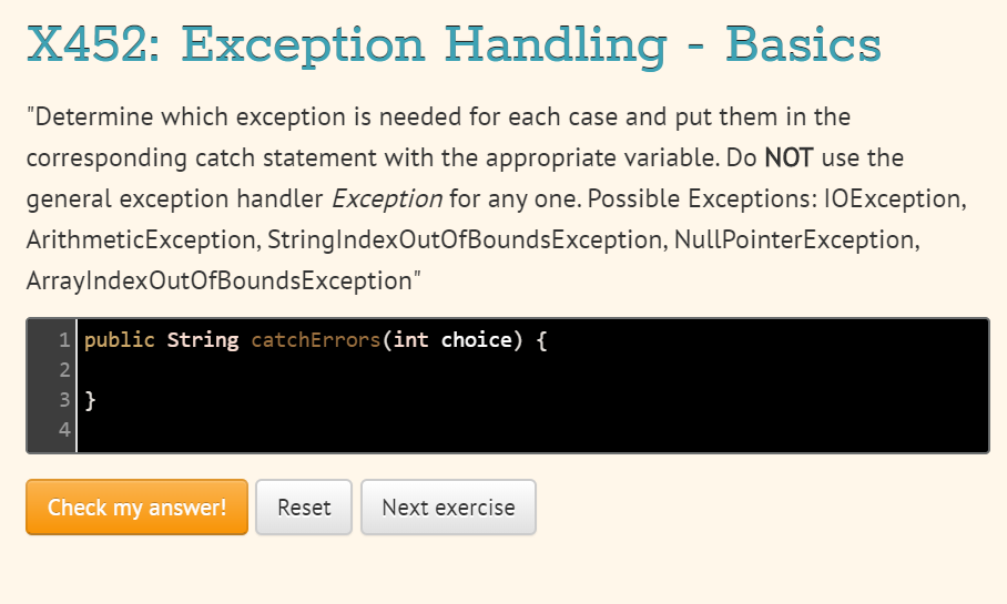 X452: Exception Handling - Basics "Determine which | Chegg.com