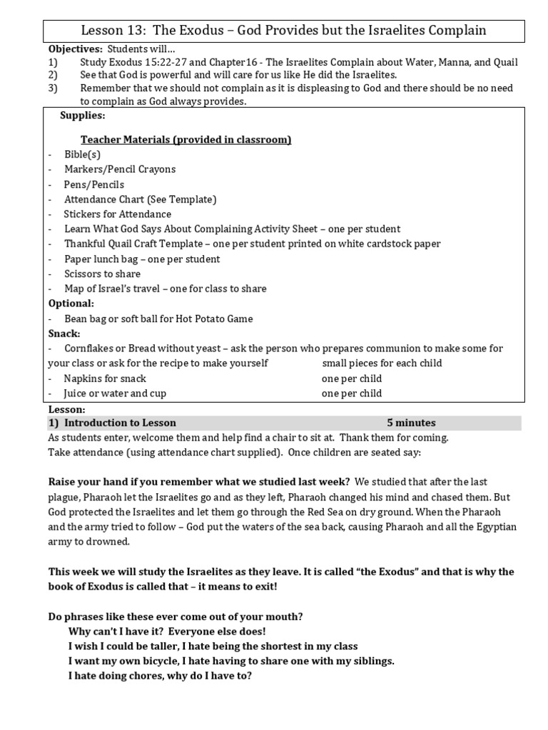 Lesson 13 - Israelites Complain | PDF | Book Of Exodus | Moses