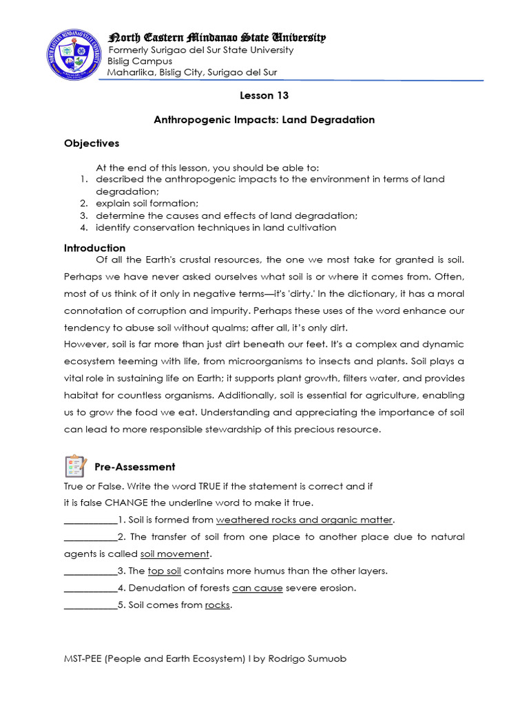 LESSON 13 - Anthropogenic Impacts - Land Degradation | PDF | Soil ...