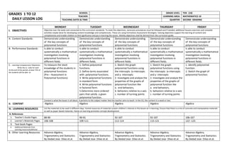 Comprehensive Daily Lesson Log for Grade 10 Mathematics: Polynomial ...