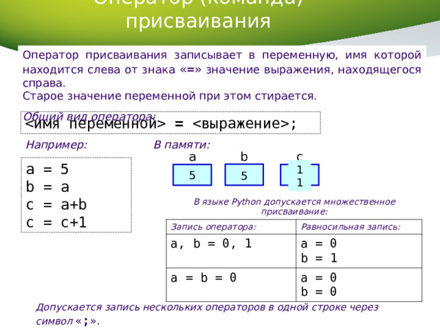Python. Оператор присваивания - презентация онлайн