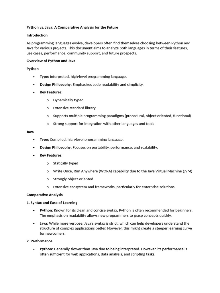 Python vs. Java A Comparative Analysis for the Future | PDF