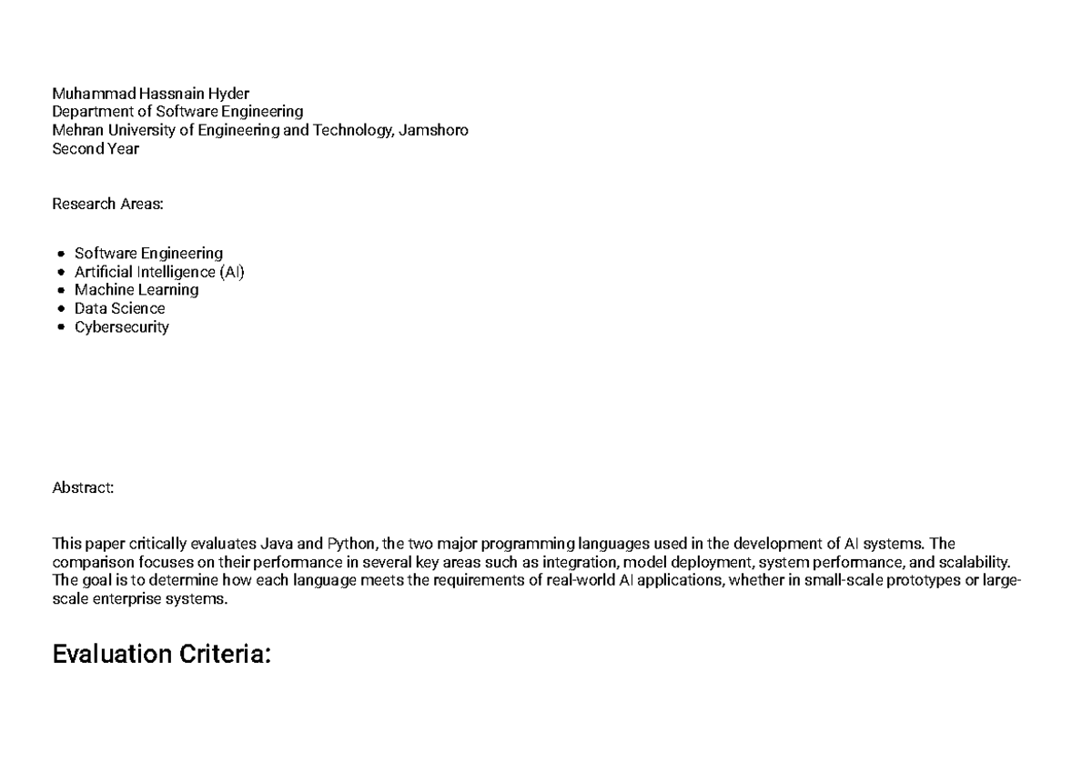 A Comparative Study of Java & Python for AI Development - Studocu