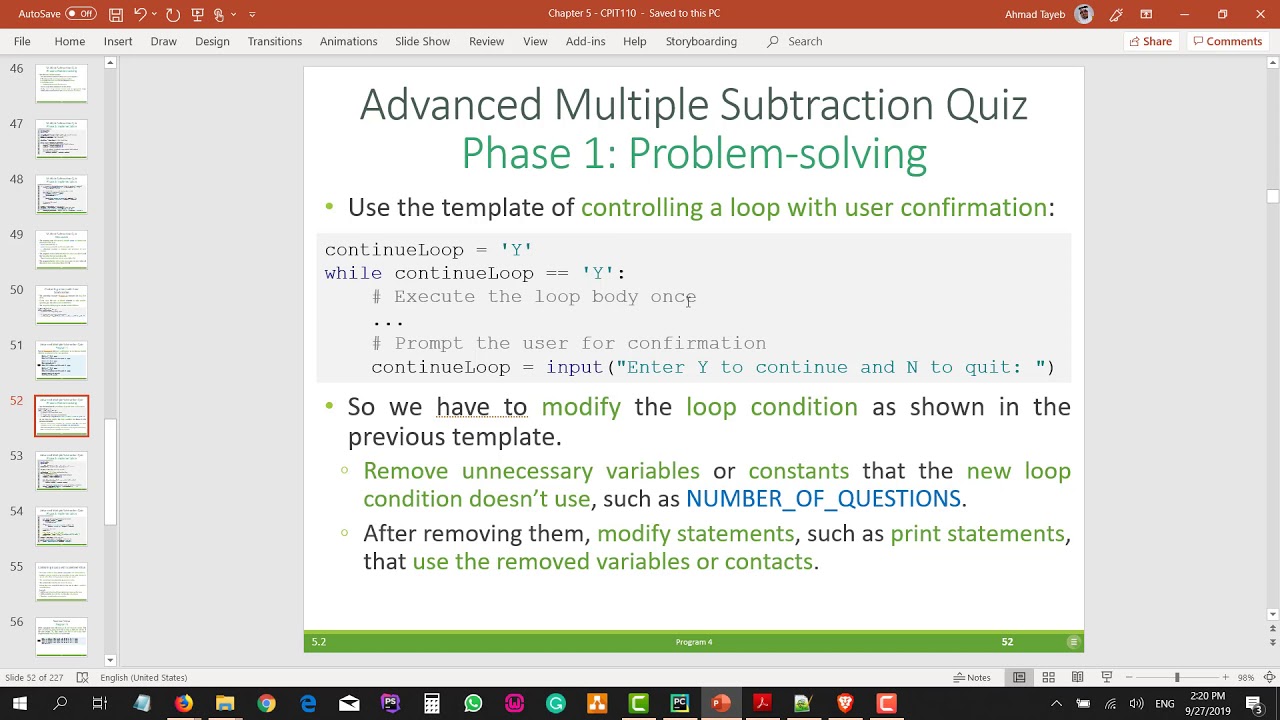 CPIT110 Lab 8 (#15) - Loops II - Part 1 of 2 - YouTube