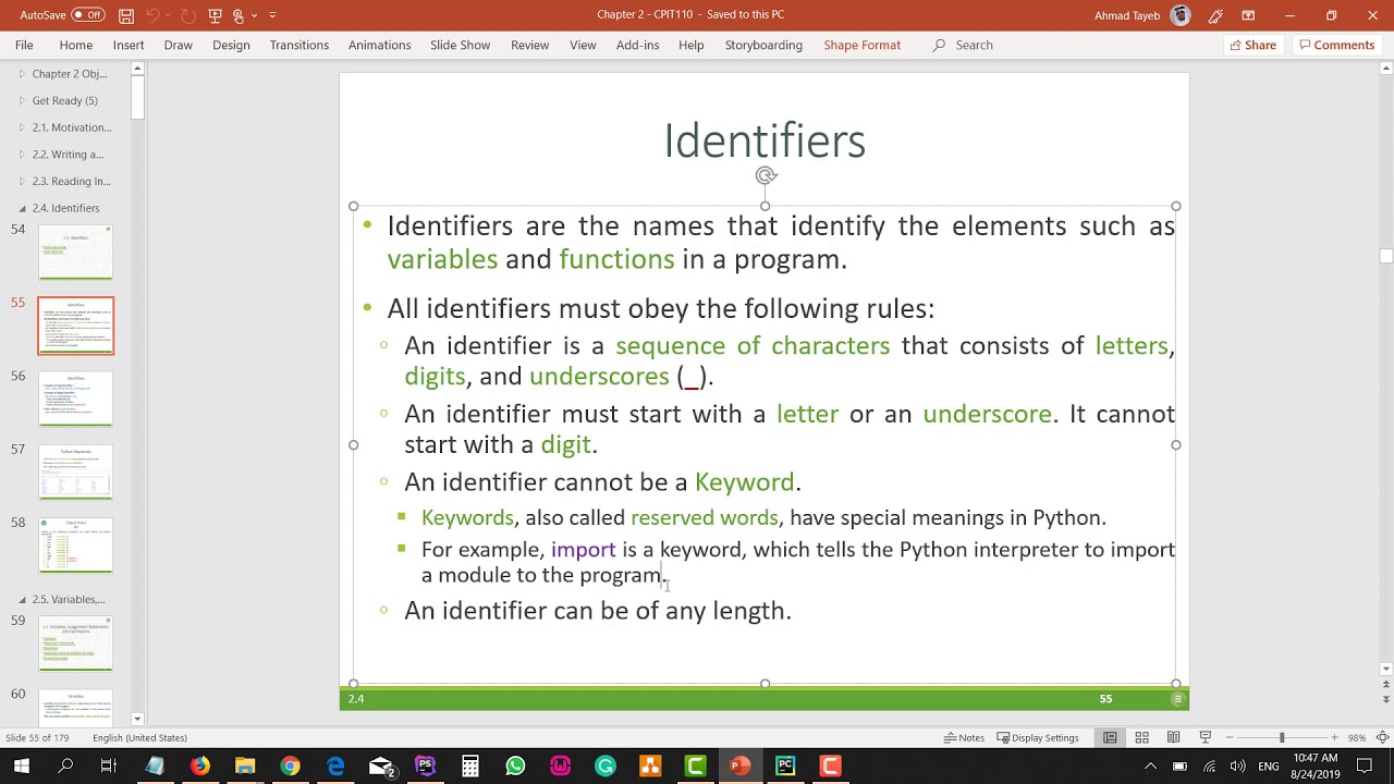 CPIT110 Chapter 2 (#17): 2.4 Identifiers - YouTube