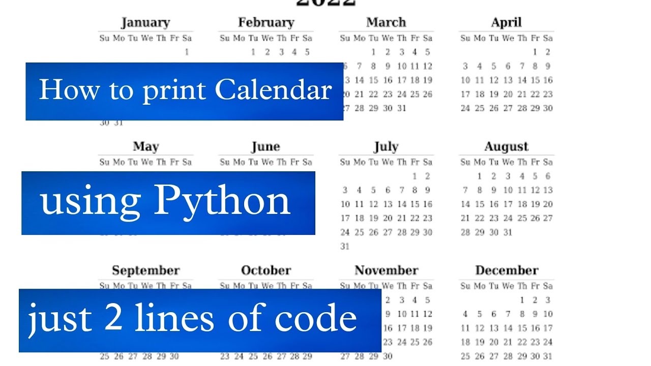 Print a month Calendar of a year in Python - YouTube