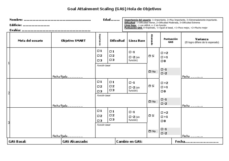 Goal Attainment Scaling (GAS) (Escala de Evaluación de Logro de Metas ...