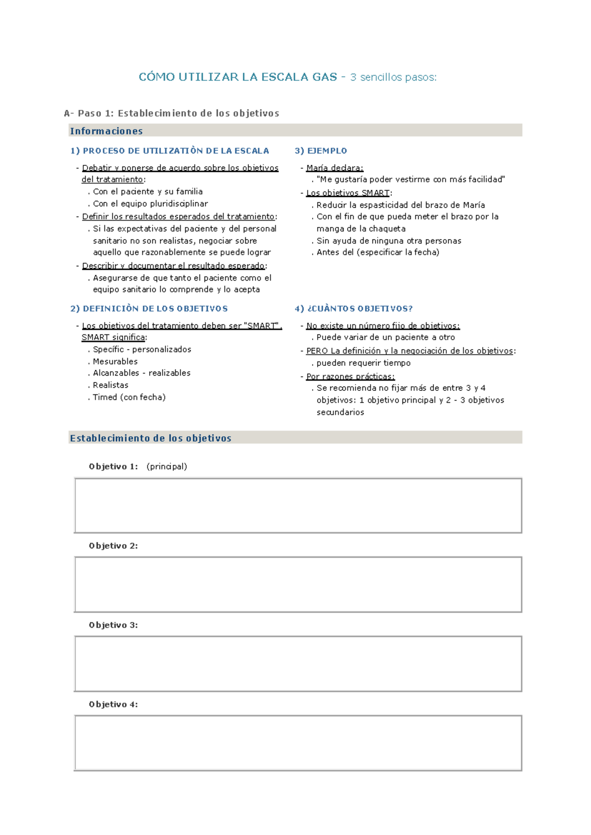 Objetivos en Fisioterapia: Escala GAS | PDF | Gases | Dolor